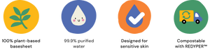 • 99.9% purified water and a drop of fruit extract.