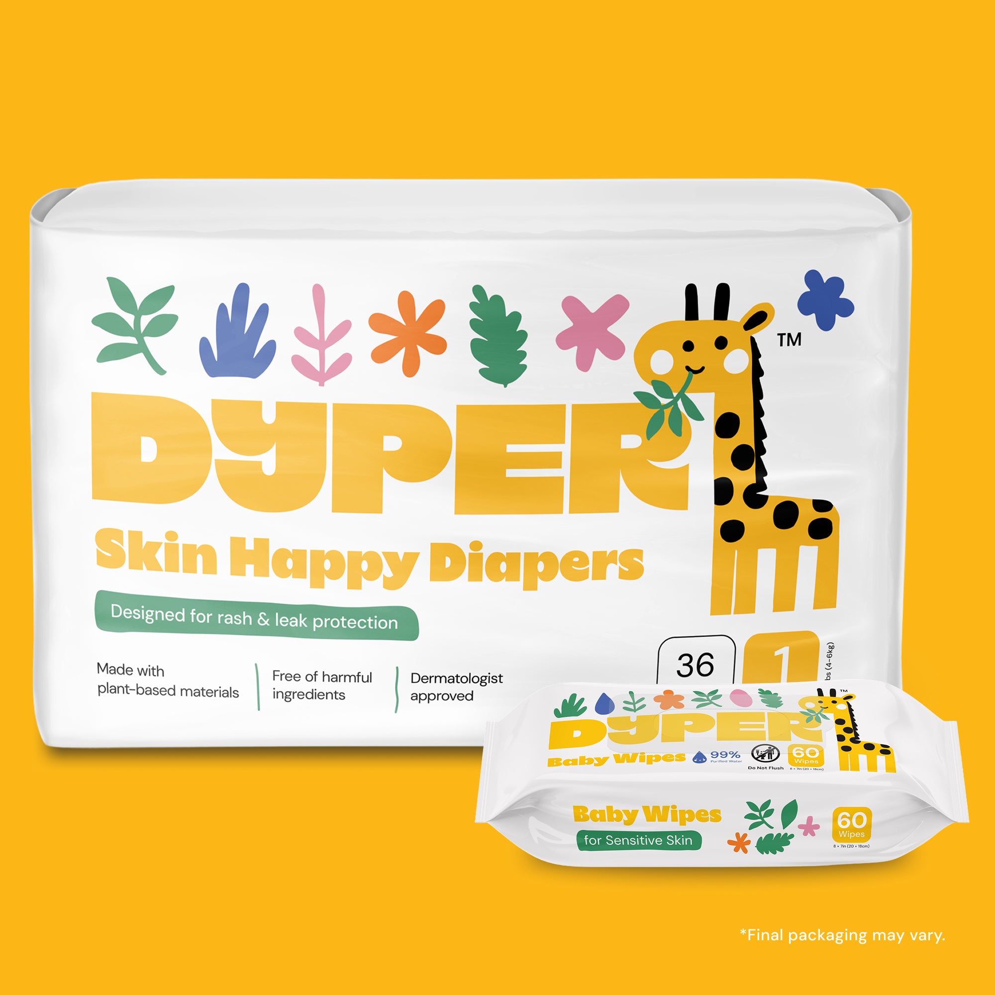 The perfect way to try Dyper. One pack of diapers paired with one pack of wipes for simple, stress-free changes. Clean ingredients, dependable performance, and nothing extra.
