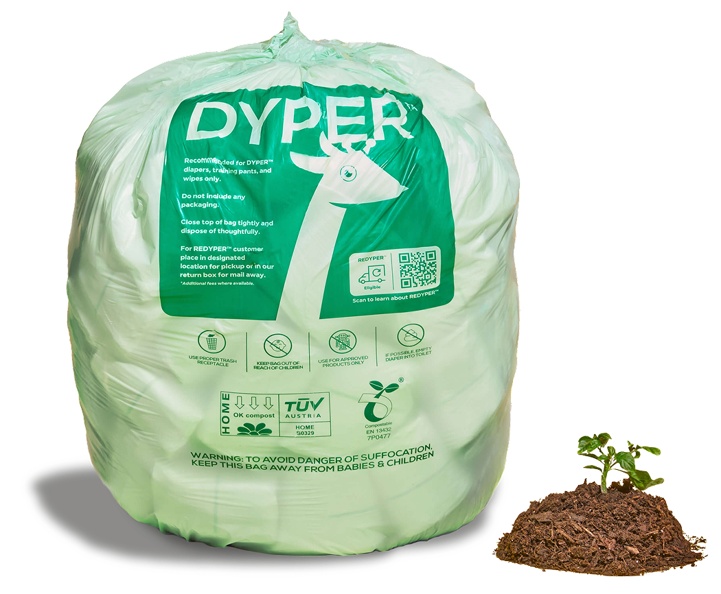 We'll collect your dirty DYPER™ diapers and wipes, and compost them so you don’t have to worry about the mess.